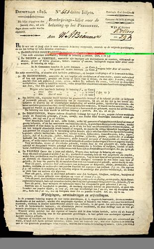 Beschrijvingsbiljet, personele belasting, 1825