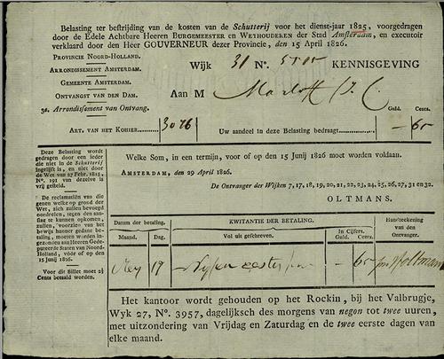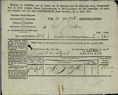 Aanslagbiljet, schutterijbelasting, 1826