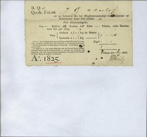 Aanslagbiljet, waterschapslasten, 1825