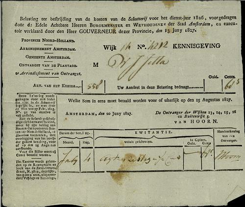 Aanslagbiljet, schutterijbelasting, 1827