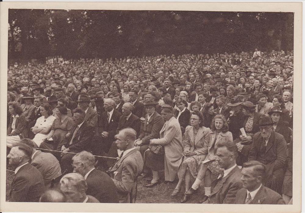 Fotodruk van de bezoekers van het toneelstuk "Van Ty...
