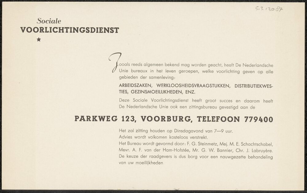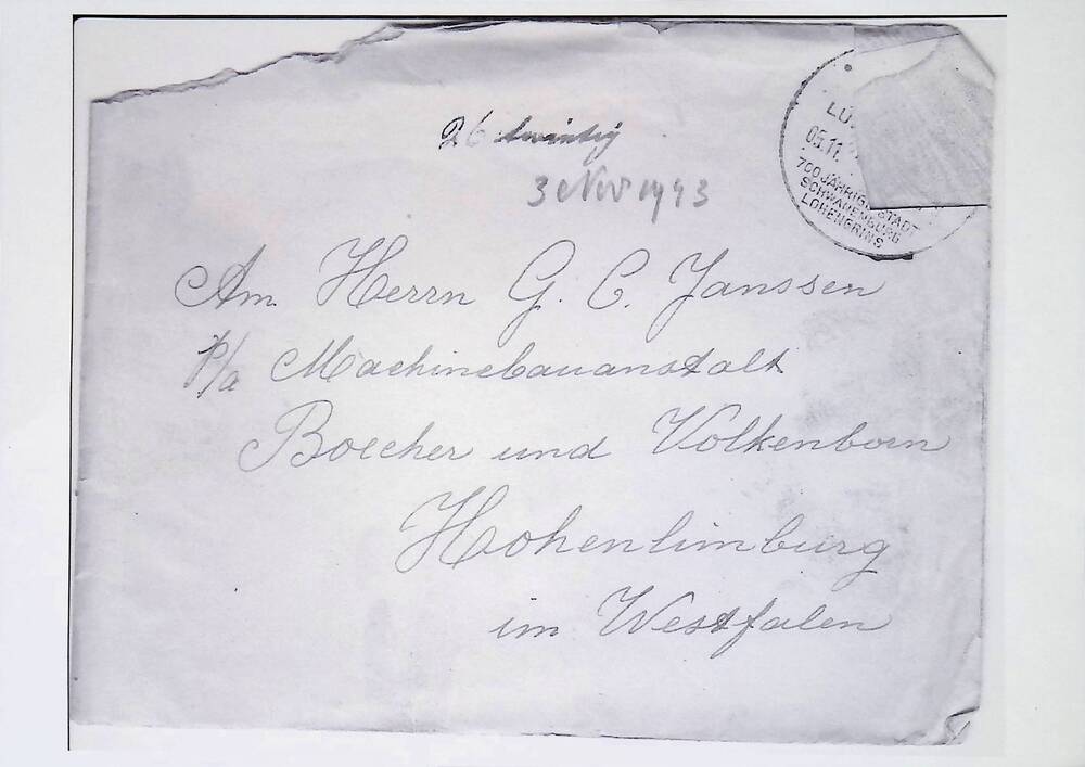 Brief in enveloppe. 3 november 1943. Aan den heer G....
