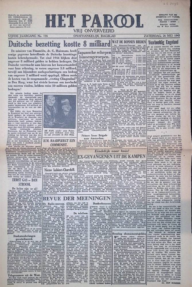 Het Parool, 26 mei 1945, 5e jaargang, No 116