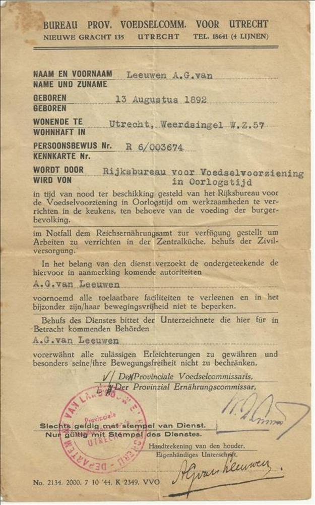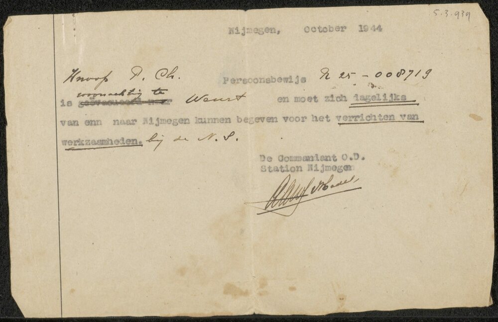 Permissie P.C.H. Knoop, oktober 1944