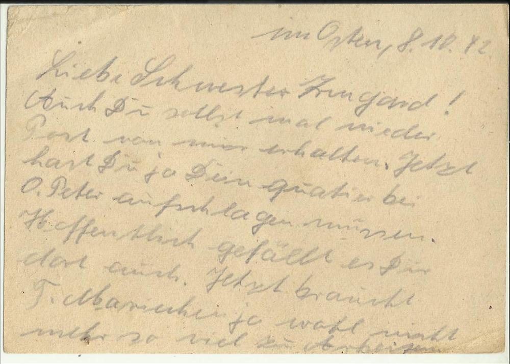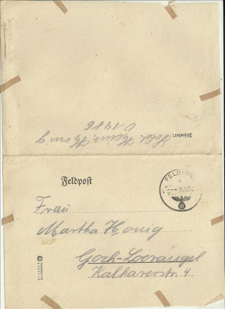 Briefkaart van Heinrich (soldaat) Honig aan Frau Irm...
