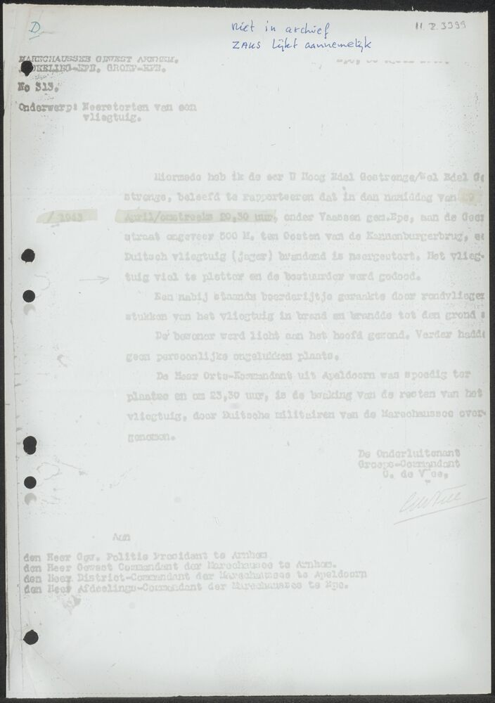 Proces-Verbaal No. 313, Marechaussee Gewest Arnhem A...