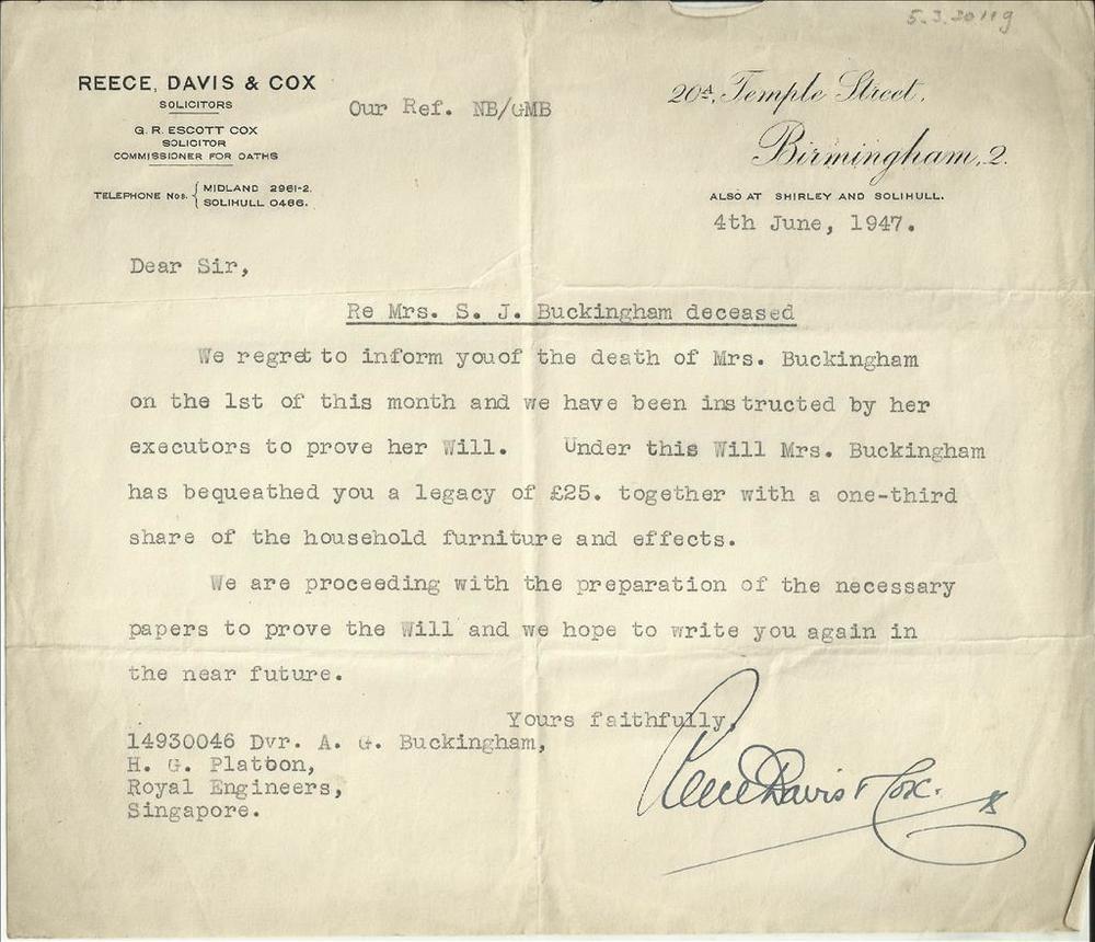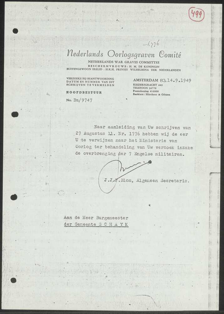 Brief van het Nederlandsch Oorlogsgraven Comité