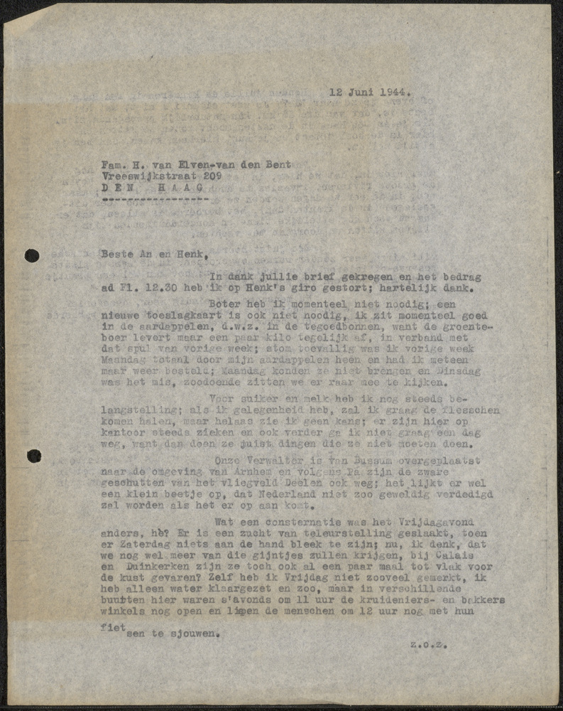 Brief aan Hubert van Ella d.d. 16-03-1941
