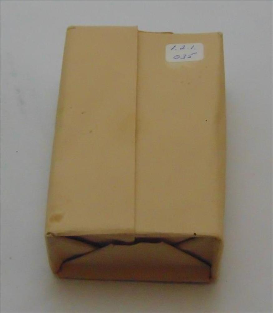 Postzak, licht van kleur met bruine verkleuringen