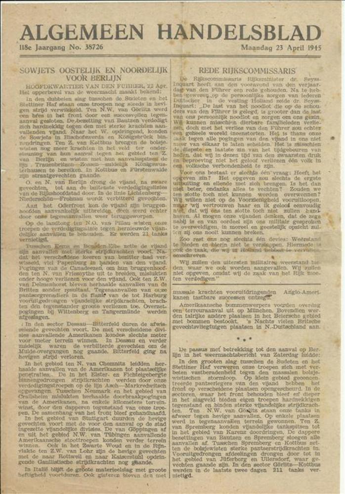 Algemeen Handelsblad zaterdag 23 april 1945