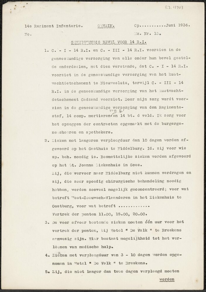"14e Regiment Infanterie Geneeskundig bevel voor 14 ...
