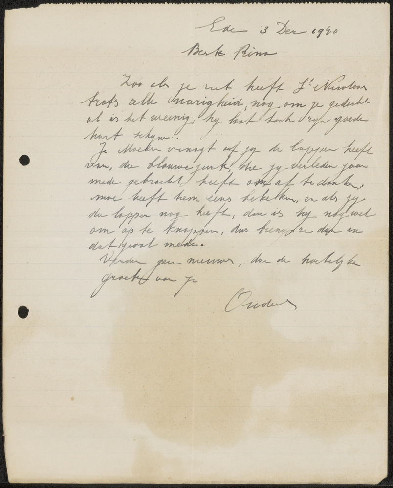 Brief, Ede 3 Dec 1940