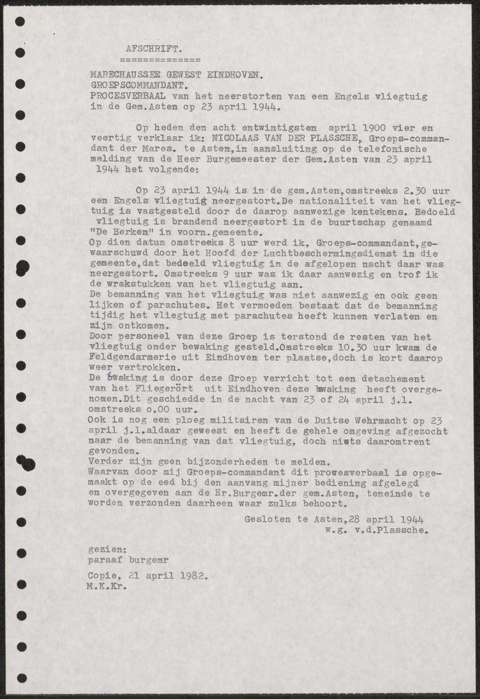 Rapport van de marechaussee Gewest Eindhoven