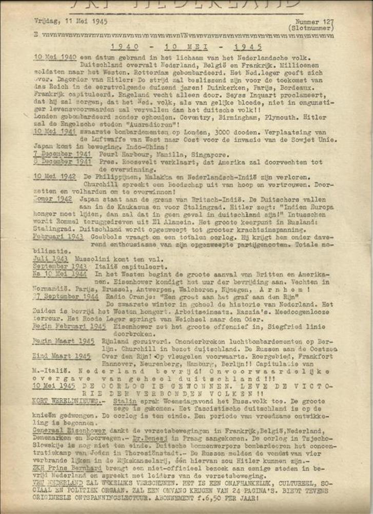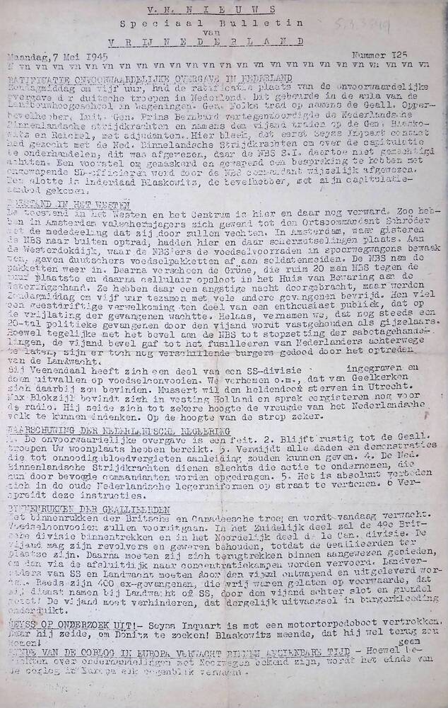 V N Nieuws, Speciaal Bulletin, No. 125, 7 Mei 1945