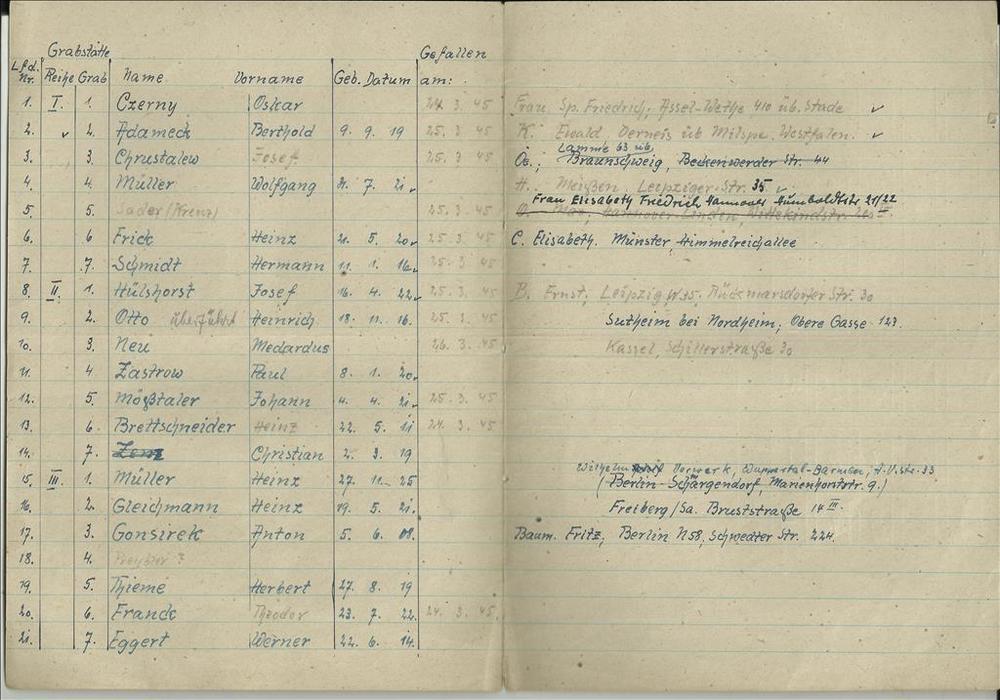 Oorlogsgraven comité kaarten Achternamen V
