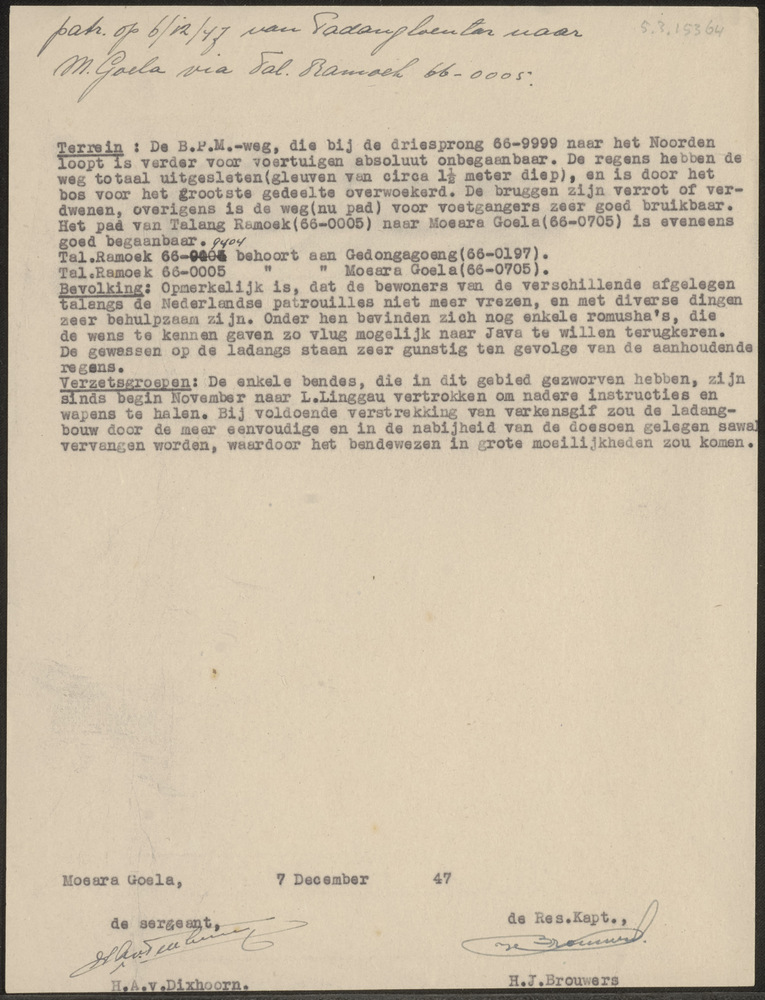 Patrouillerapport, gedateerd Moeara Goela, 7-12-47