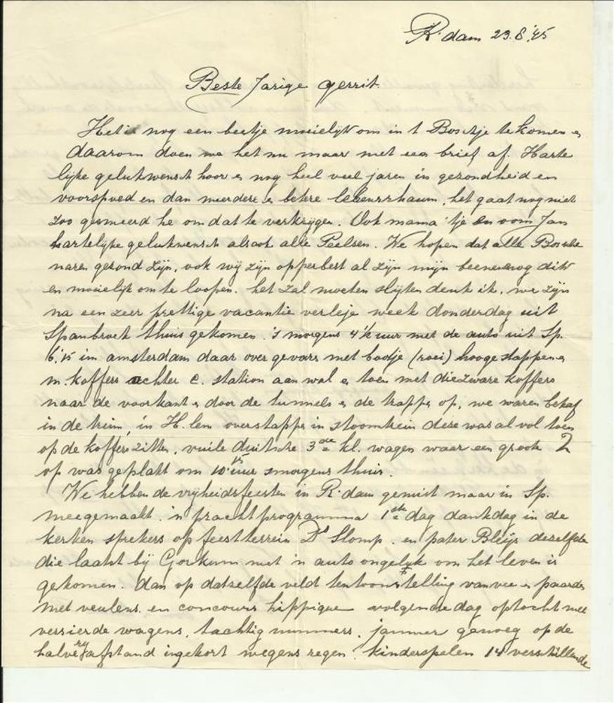 Rotterdam 23 augustus 1945 - Beste jarige Gerrit - v...