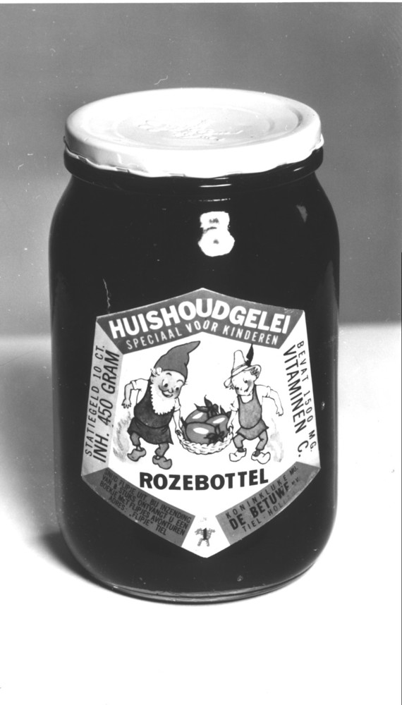Fles van glas met etiket van papier en afsluiting va...