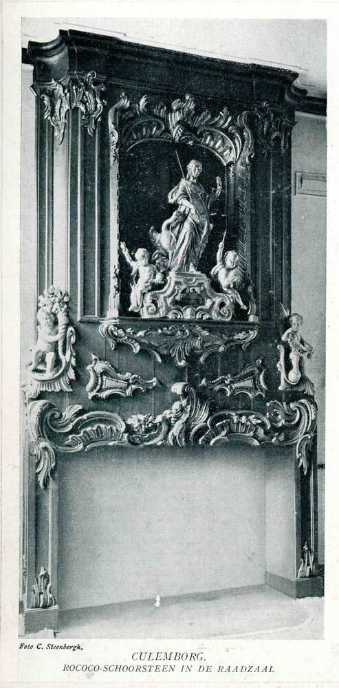 Foto, voorstellende de rococoschoorsteenmantel in de...