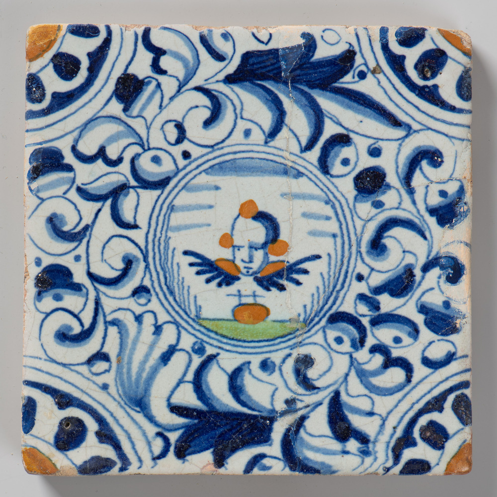 tegel van keramiek met tinglazuur, voorstellende: Ch...