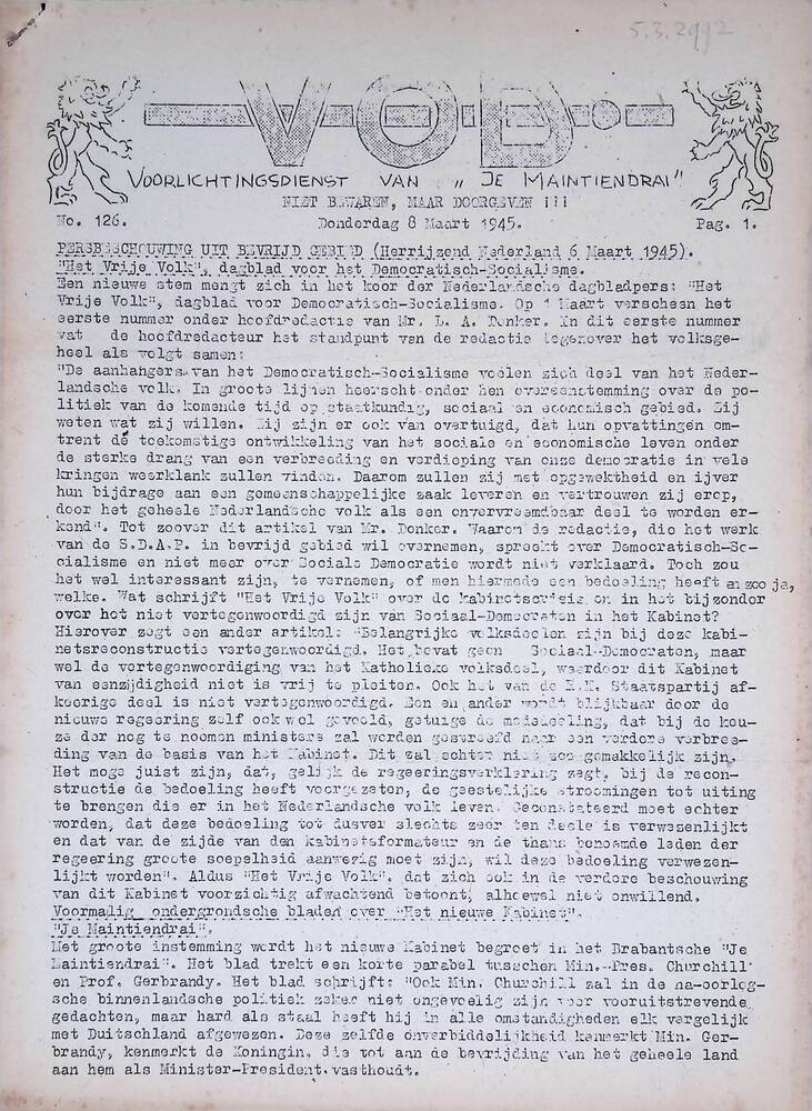 De Vrije Pers ( diverse uitgave ), De Vrije Pers, No...