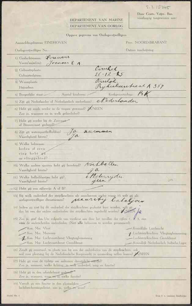 Aanmeldingsformulier oorlogsvrijwilliger Aanmeldings...