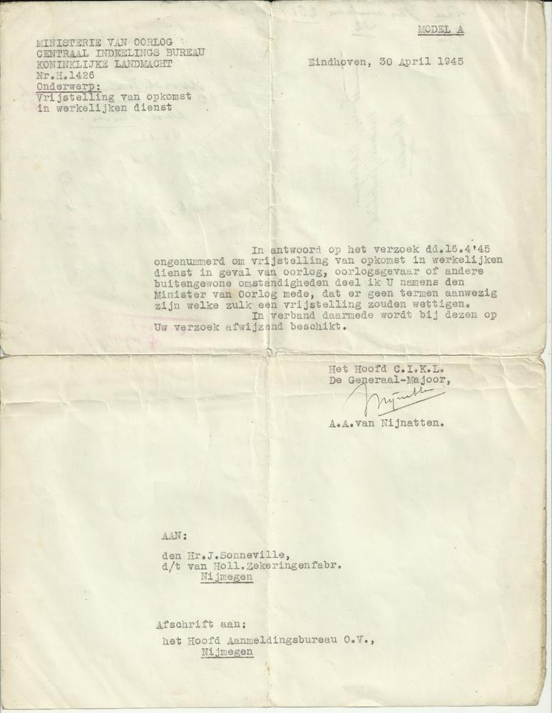 Antwoord op verzoek vrijstelling van opkomst militai...