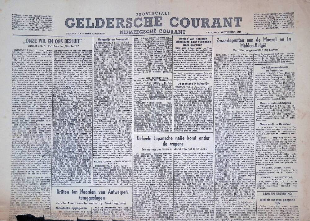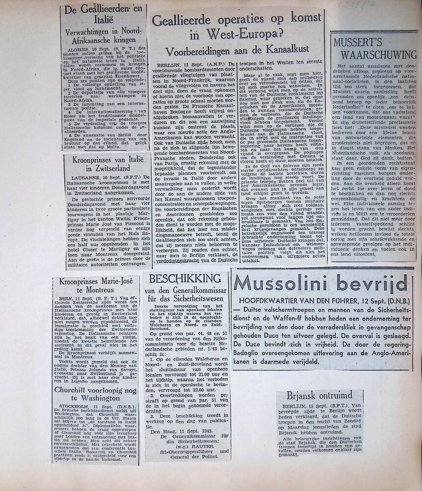 Een aantal krantenknipsels uit de oorlogsperiode 194...