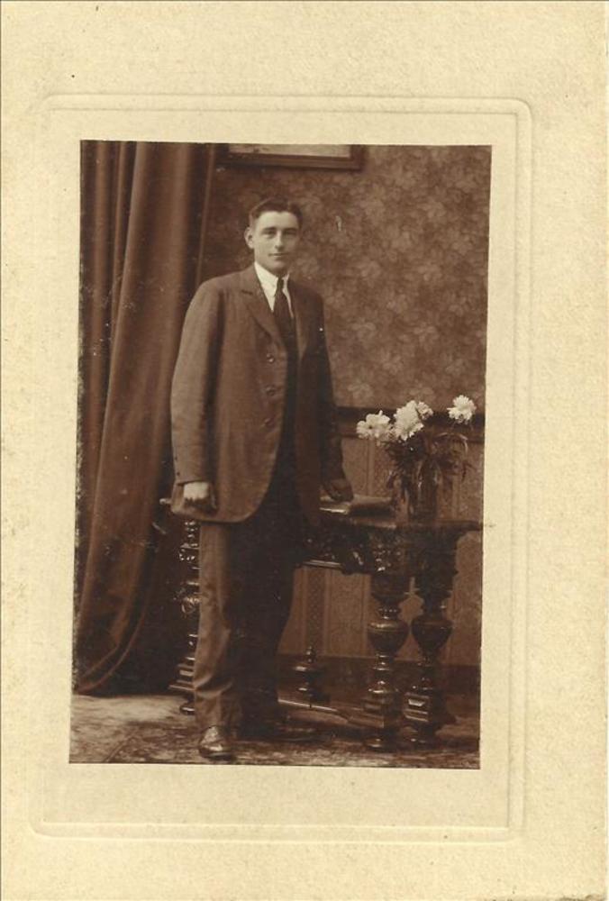 Vooroorlogs, man, tafeltje, bloem