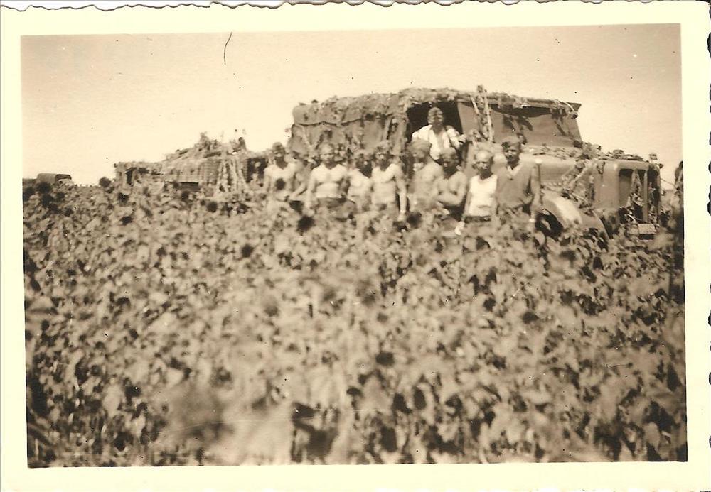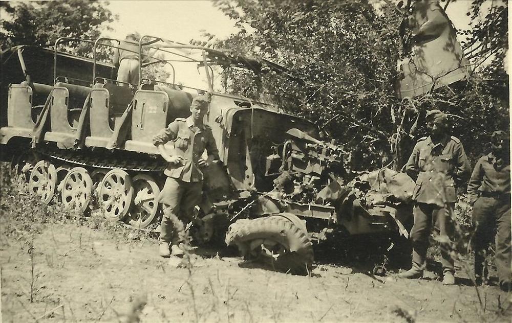 Duitse militairen me gecamoufleerde halftrack in het...