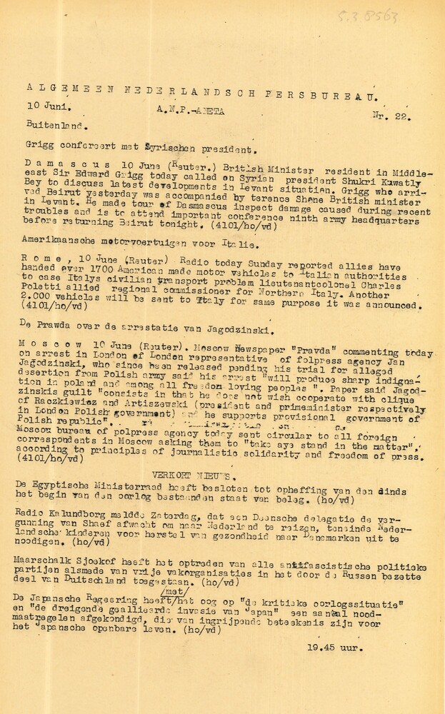 Vel: Algemeen Nederlandsch Persbureau, mededelingen,...