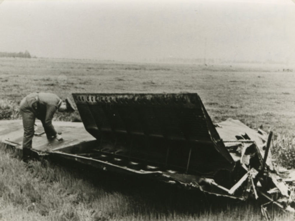 Foto Duitse Luftwaffe militair inspecteert deel van ...