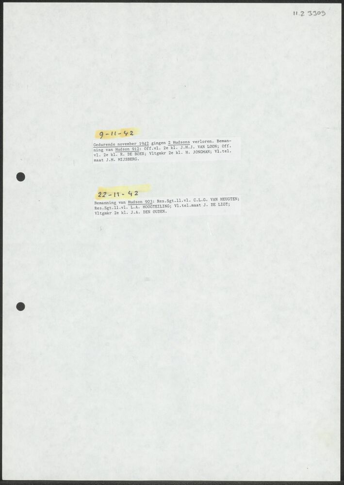Rapport twee Hudsons 9 en 22 november 1942.