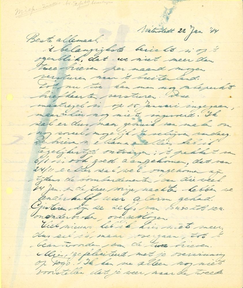 Brief aan Hubert en Ella van Fridel d.d. 31-10-1943