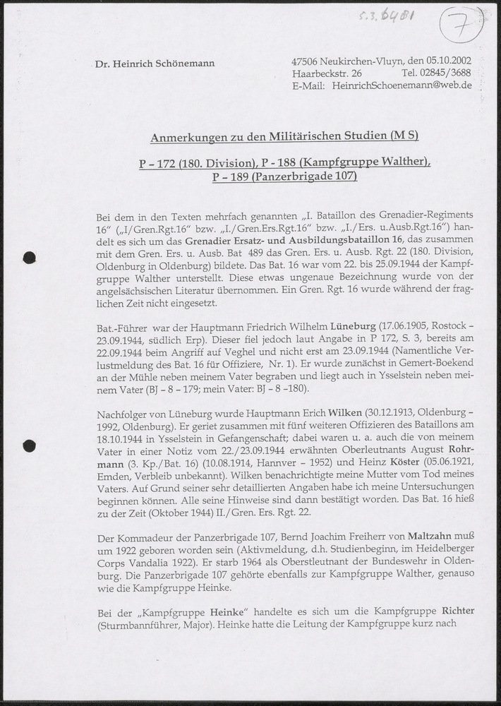 "Anmerkungen zu den Militärischen Studien (MS) P-172...