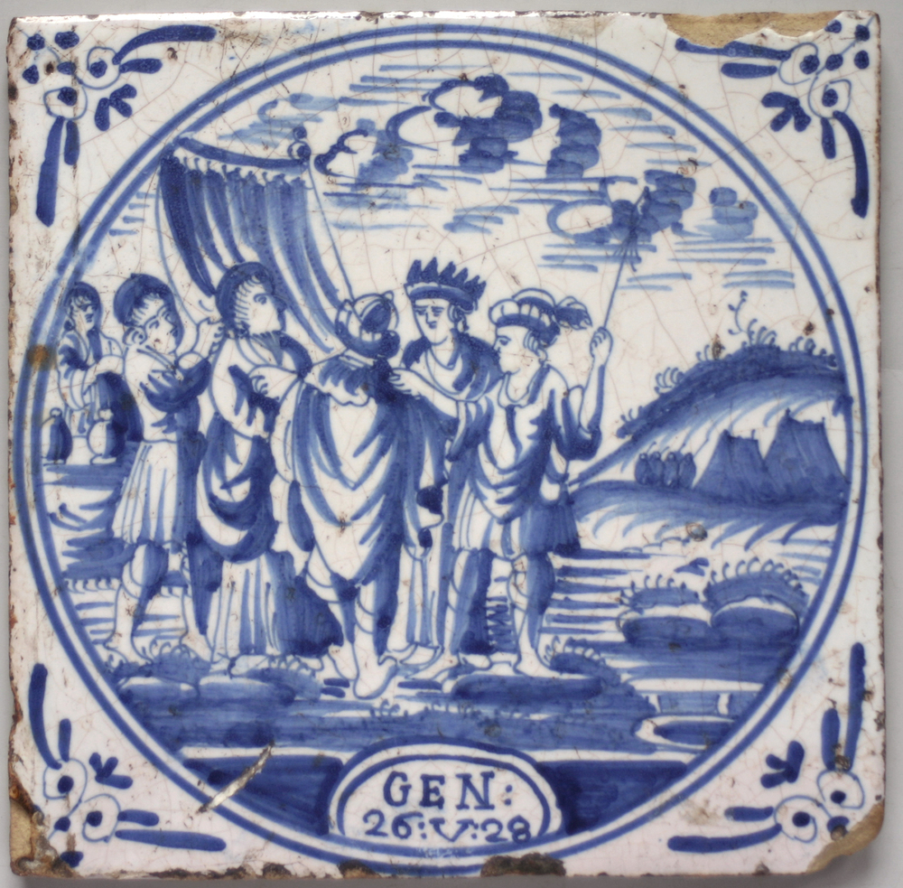 tegel van keramiek met tinglazuur, voorstellende: Ab...