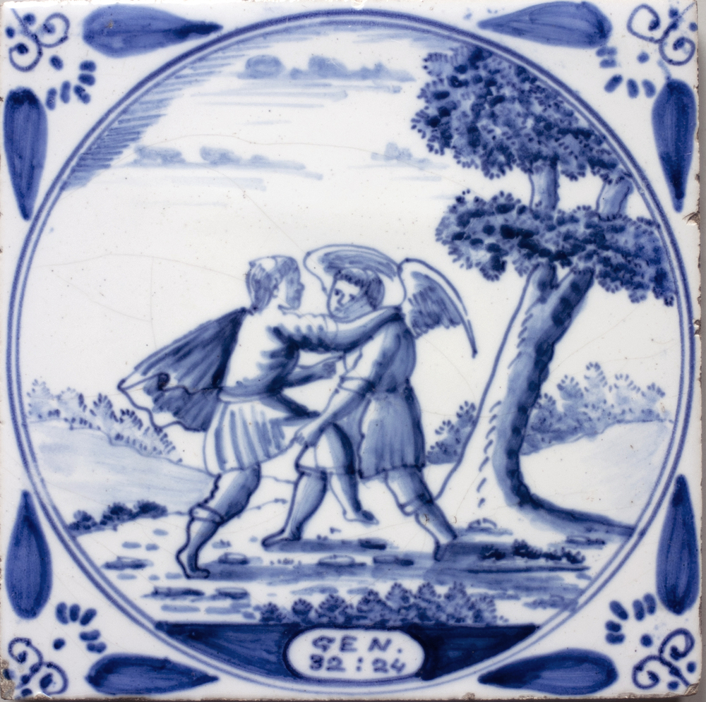 tegel van keramiek met tinglazuur, voorstellende: Ja...