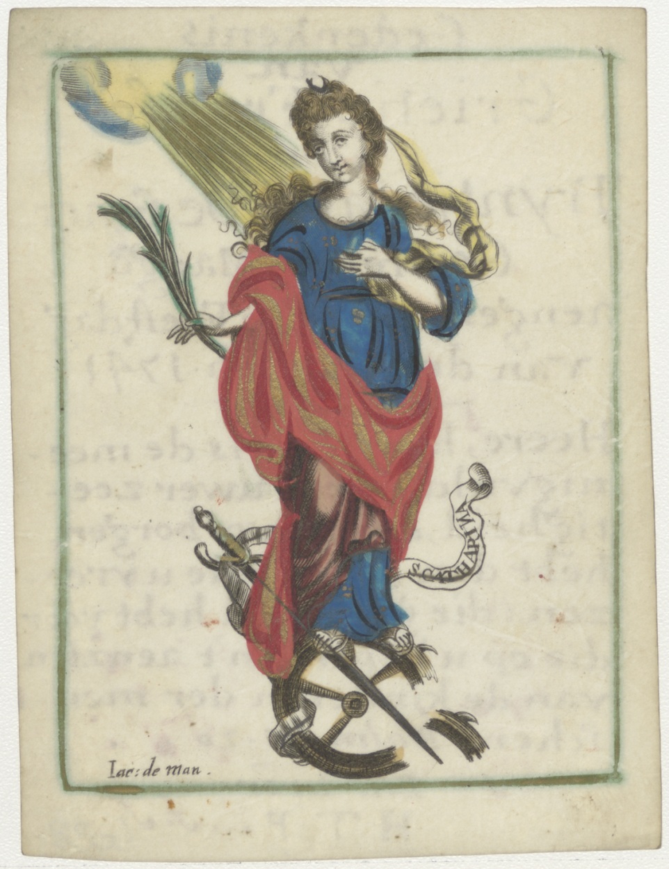 H. Catherina, ingekleurd, kz. Oud schrift tekst (?)