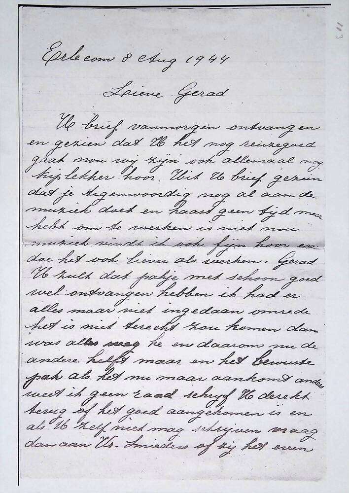 Brief in enveloppe. 8 augustus 1944. Aan den heer G....