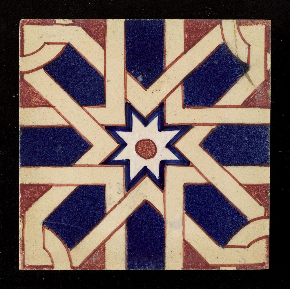 Tegel van keramiek in tinglazuur, voorstellende: orn...
