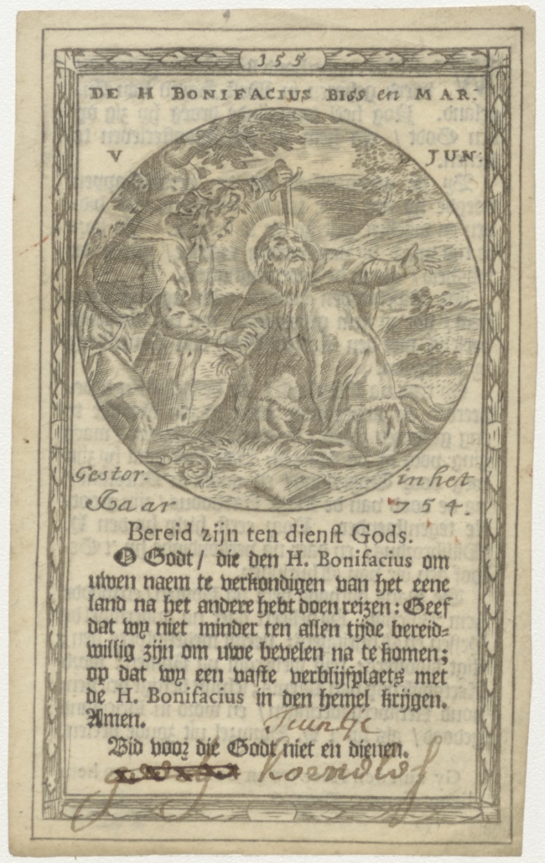 H. Bonifatius, gebed, Teuntje Kornelis(?), kz. leven...