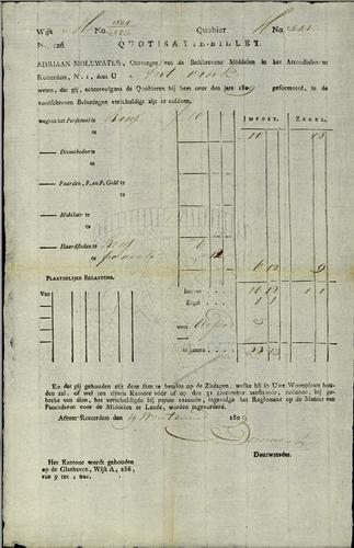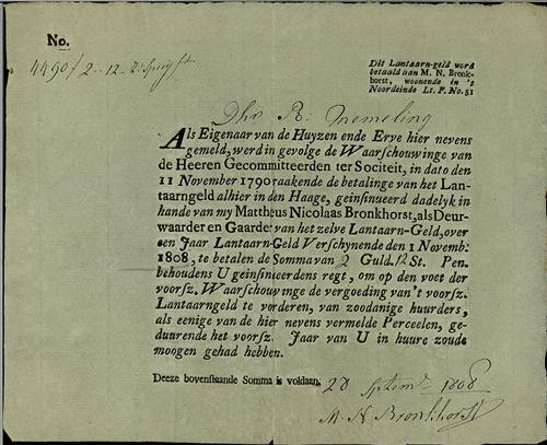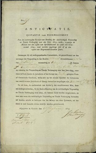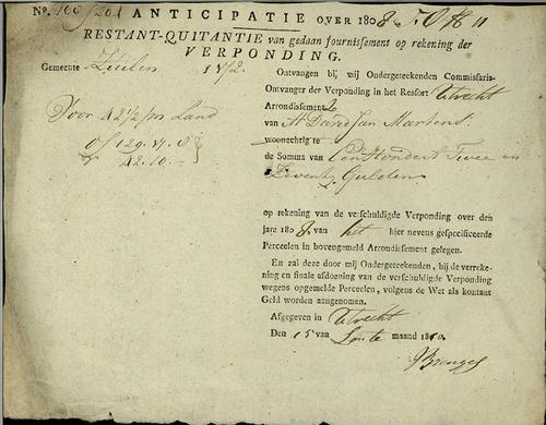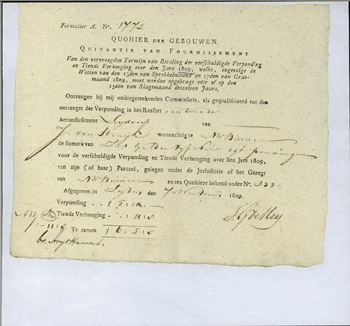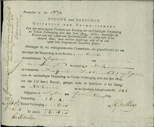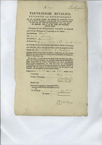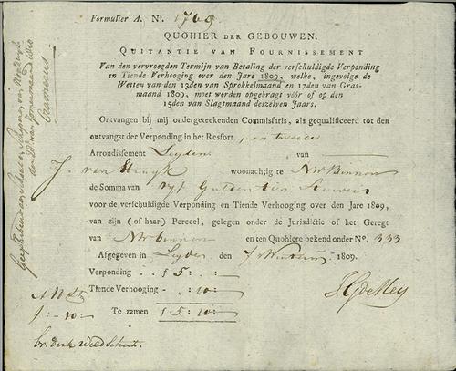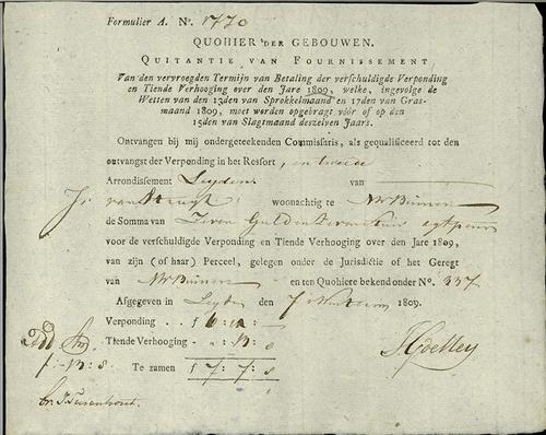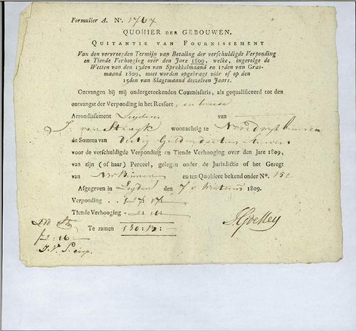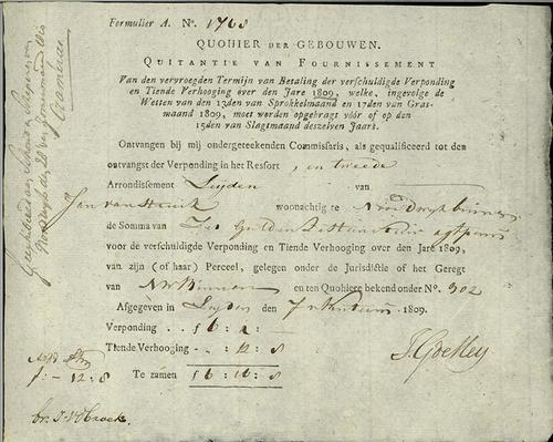 Kwitantie verponding, 1809