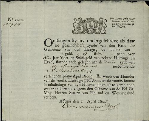 Kwitantie, straatgeld, 1808