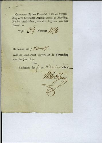 Kwitantie, verponding, tiende verhoging, 1810