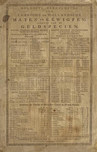 Tabel vergelijking tussen Franse en Hollandse maten,...