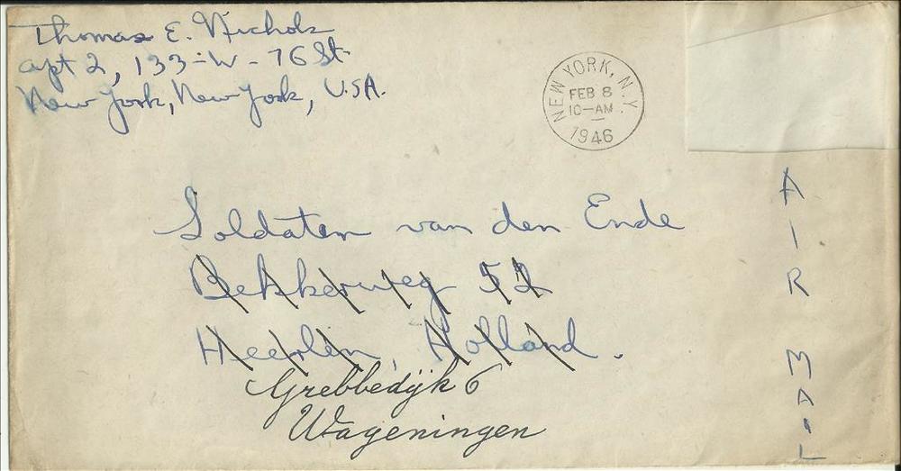 Brief in een enveloppe van Thomas Nicholz ( New York...