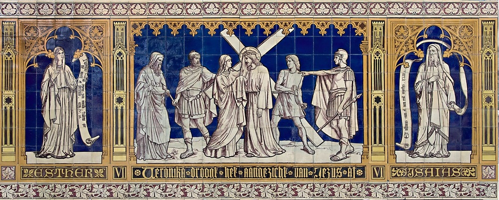 Tegeltableau, voorstellende de 6e statie van een kru...