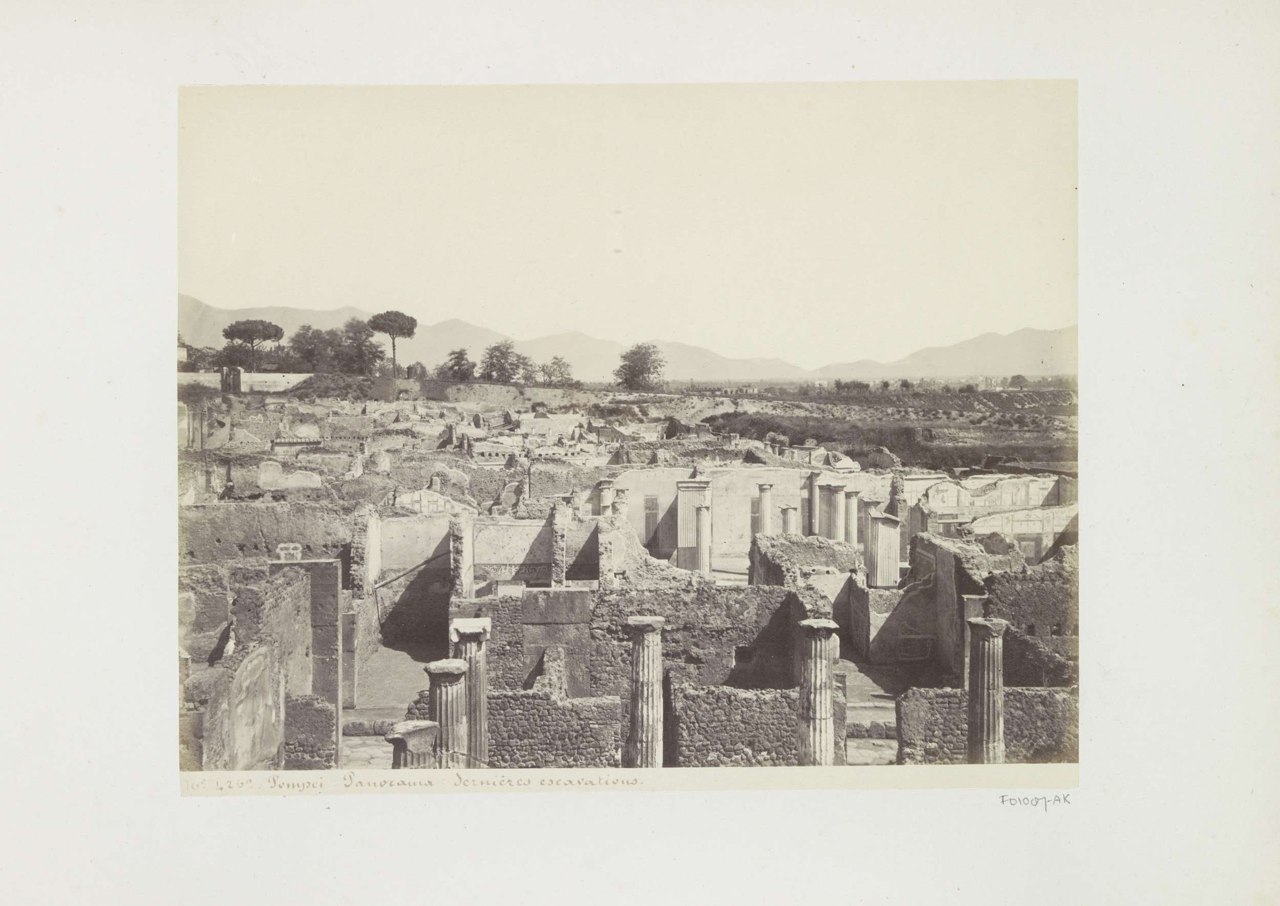 Restanten met gebouwen in Pompeï met op de voorgrond...