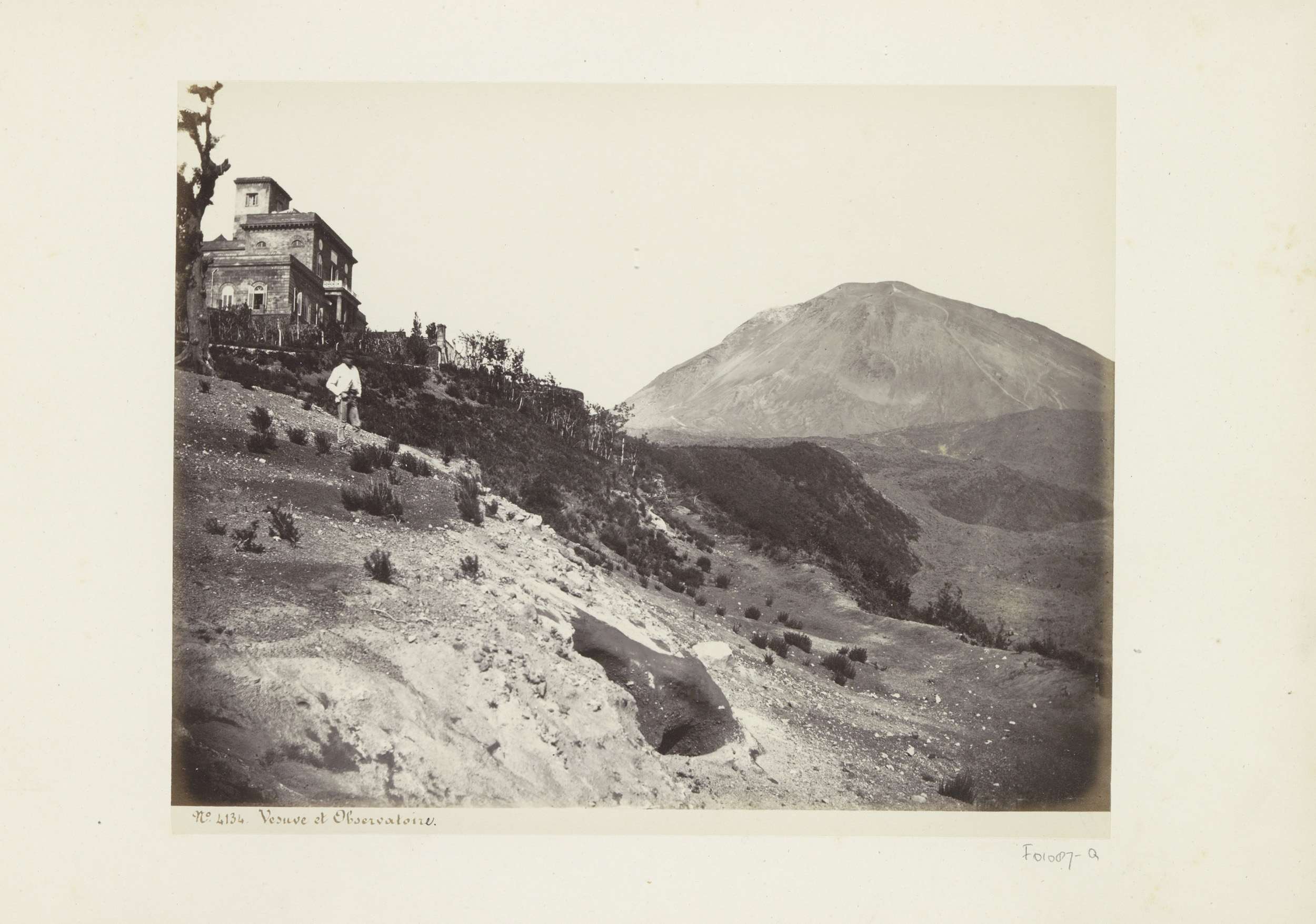Man poserend voor het observatorium op de flanken va...