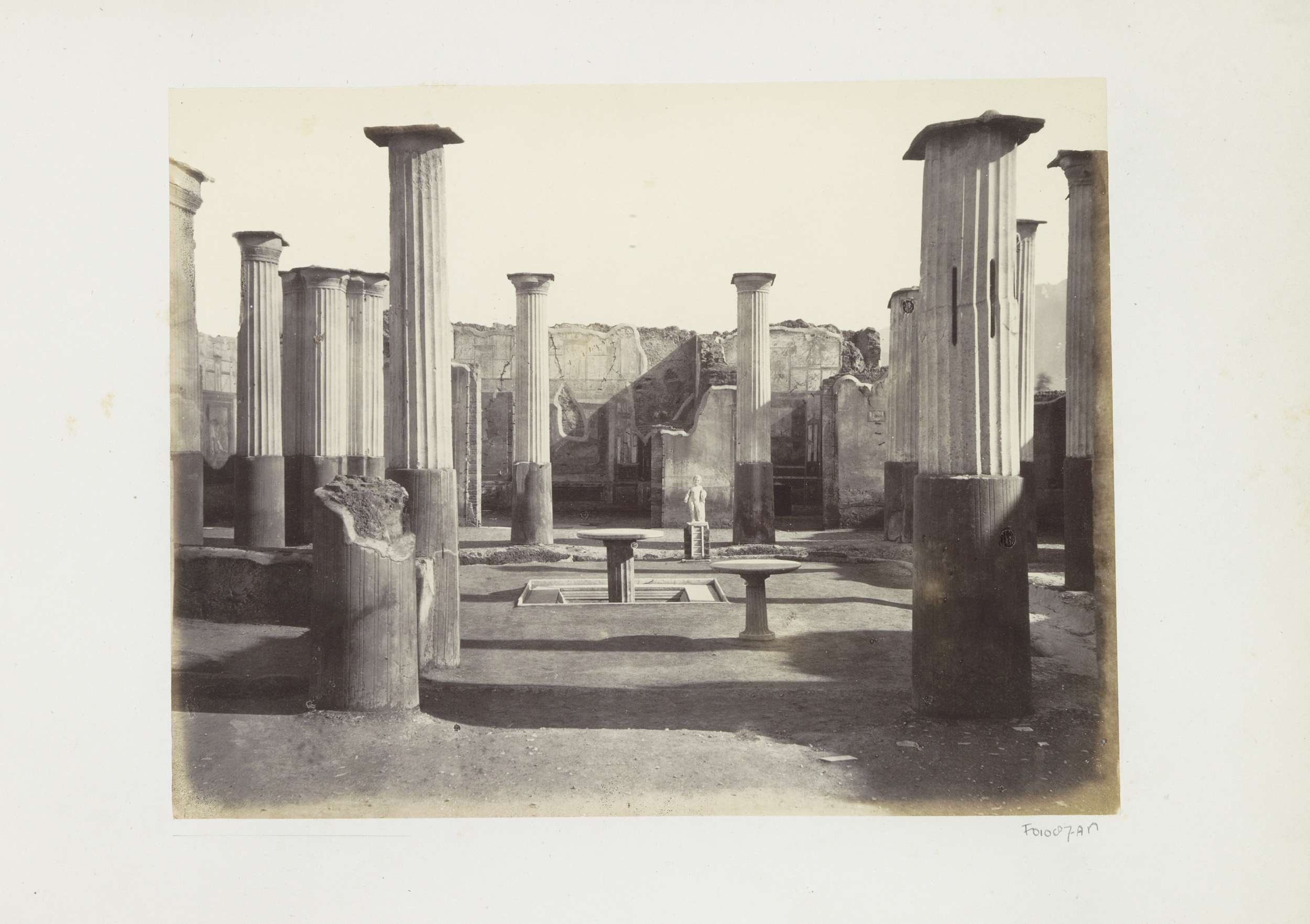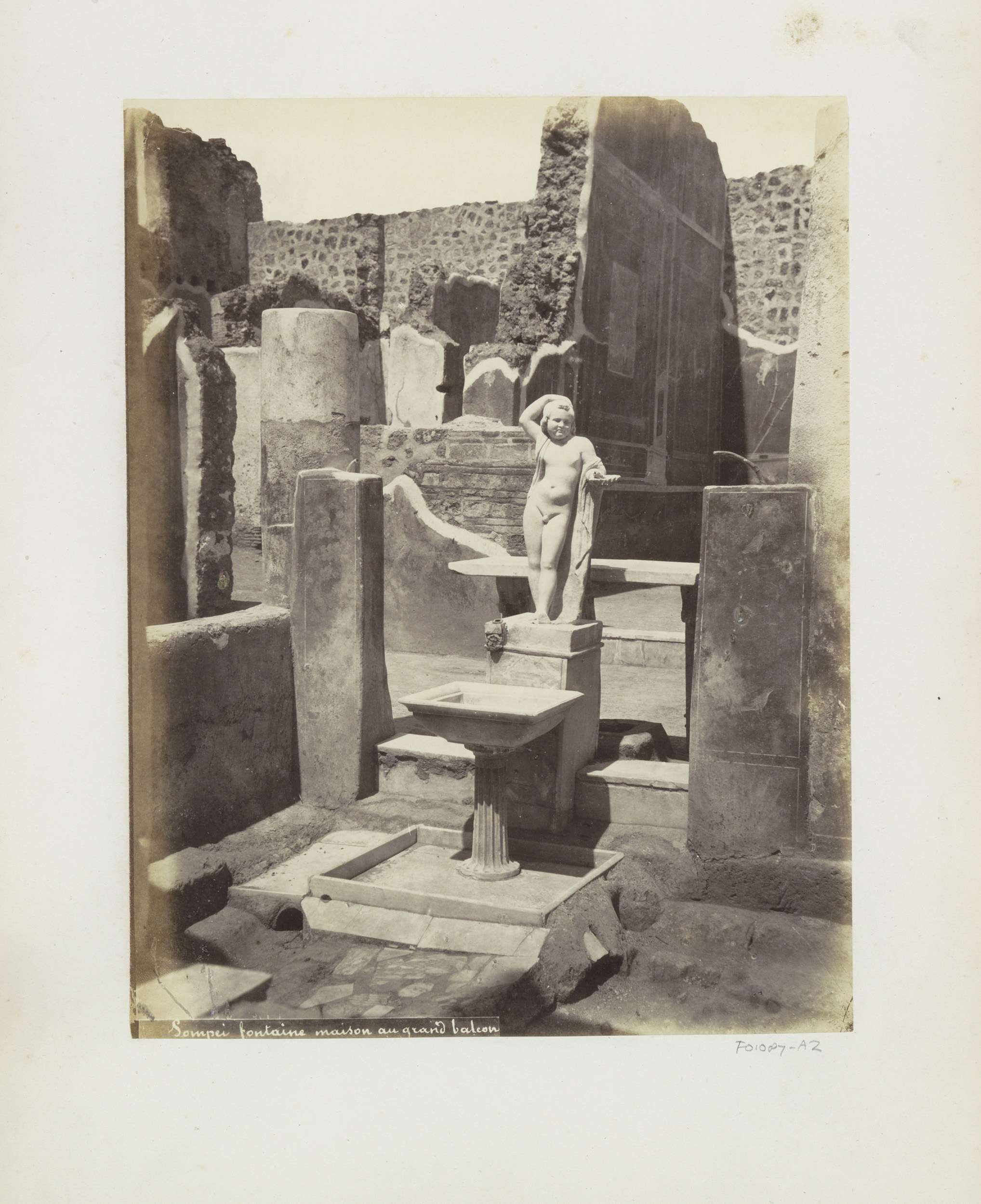 Restanten van een huis in Pompeï met een beeld en ee...